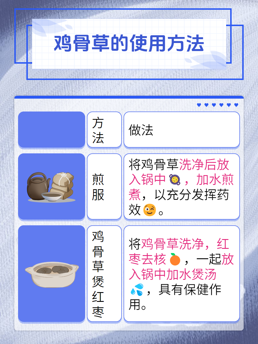 在使用鸡骨草时,务必遵循医嘱,确保用药安全。虚寒体弱者慎用,以免加重病情。💡