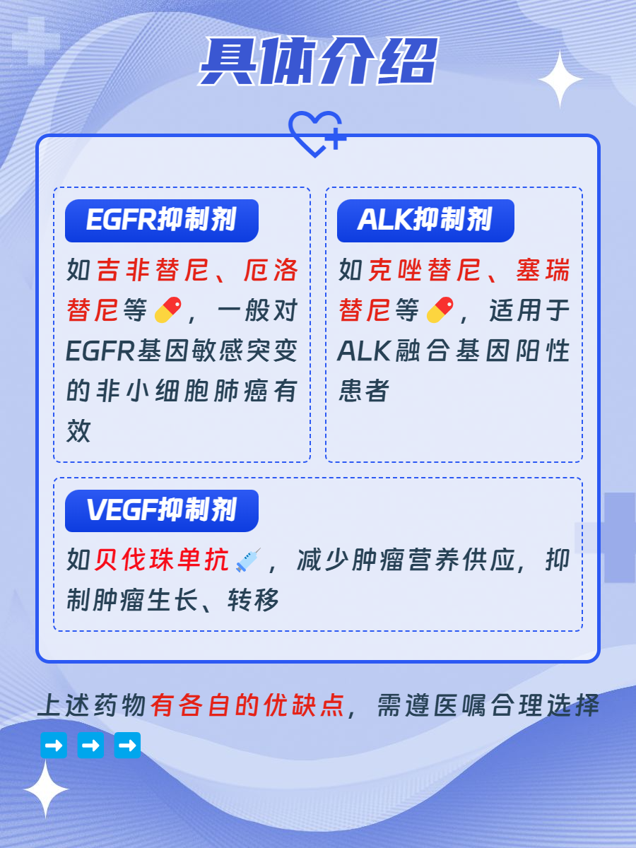 🌞在肺癌的治疗领域中,靶向药的出现为患者带来了新的选择。那么,肺癌靶向药有哪些呢?