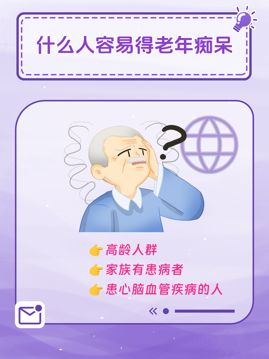 老年痴呆是一种起病比较隐匿,且进行性发展的神经系统退行性病变。我经常被人问及哪些人容易得老年痴呆🤔?为了提高大家对老年痴呆这个疾病的认知,接下来对于老年痴呆的好发人群,进行简单的讲解。