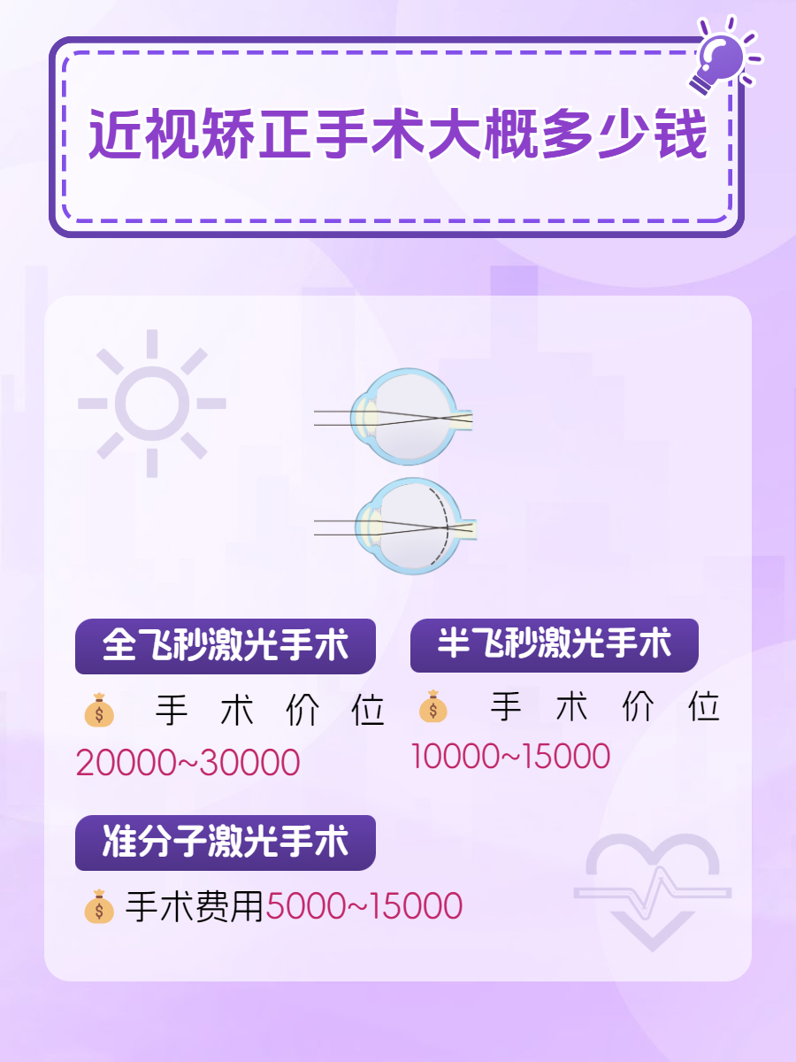 💛1、全飞秒激光手术:手术价位一般为20000~30000之间,主要是利用激光去除一部分角膜组织,改变角膜的屈光能力。