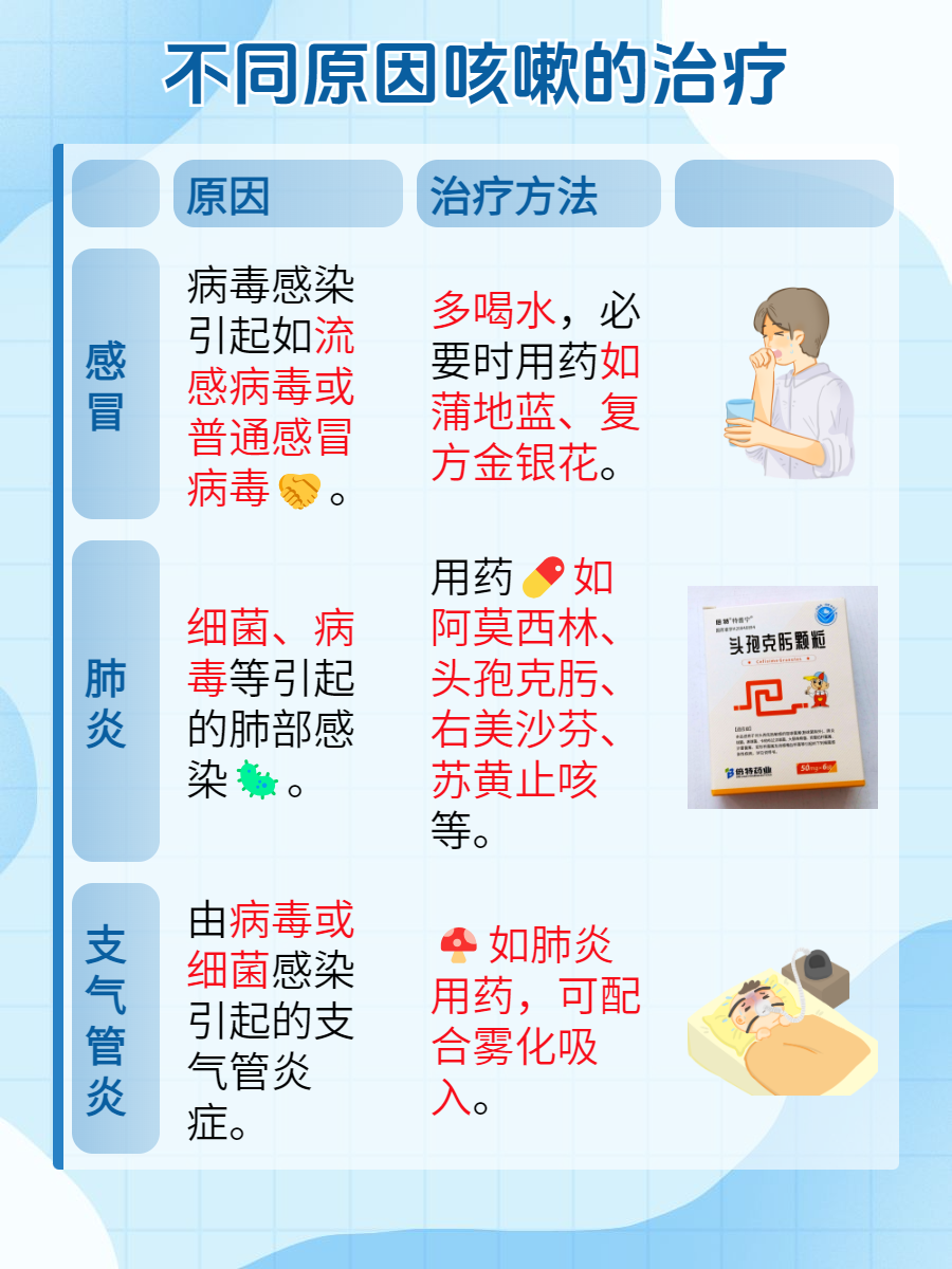 如果咳嗽症状较为严重,可以使用药物治疗。常见的止咳药物有右美沙芬、苏黄止咳等,可以缓解咳嗽症状。💊并针对病因治疗,如感染引起的,使用阿莫西林、头孢克肟、蒲地蓝、复方金银花等药物。