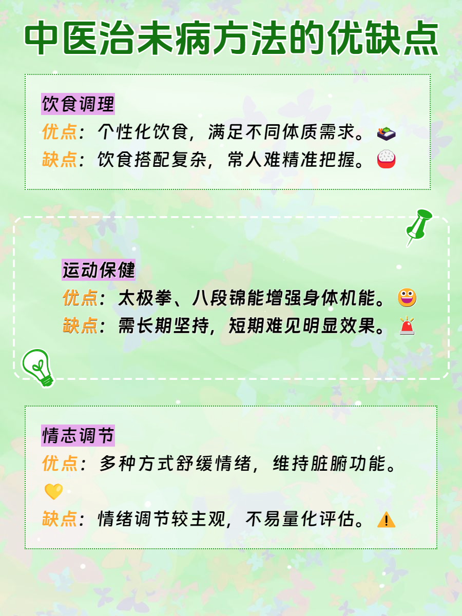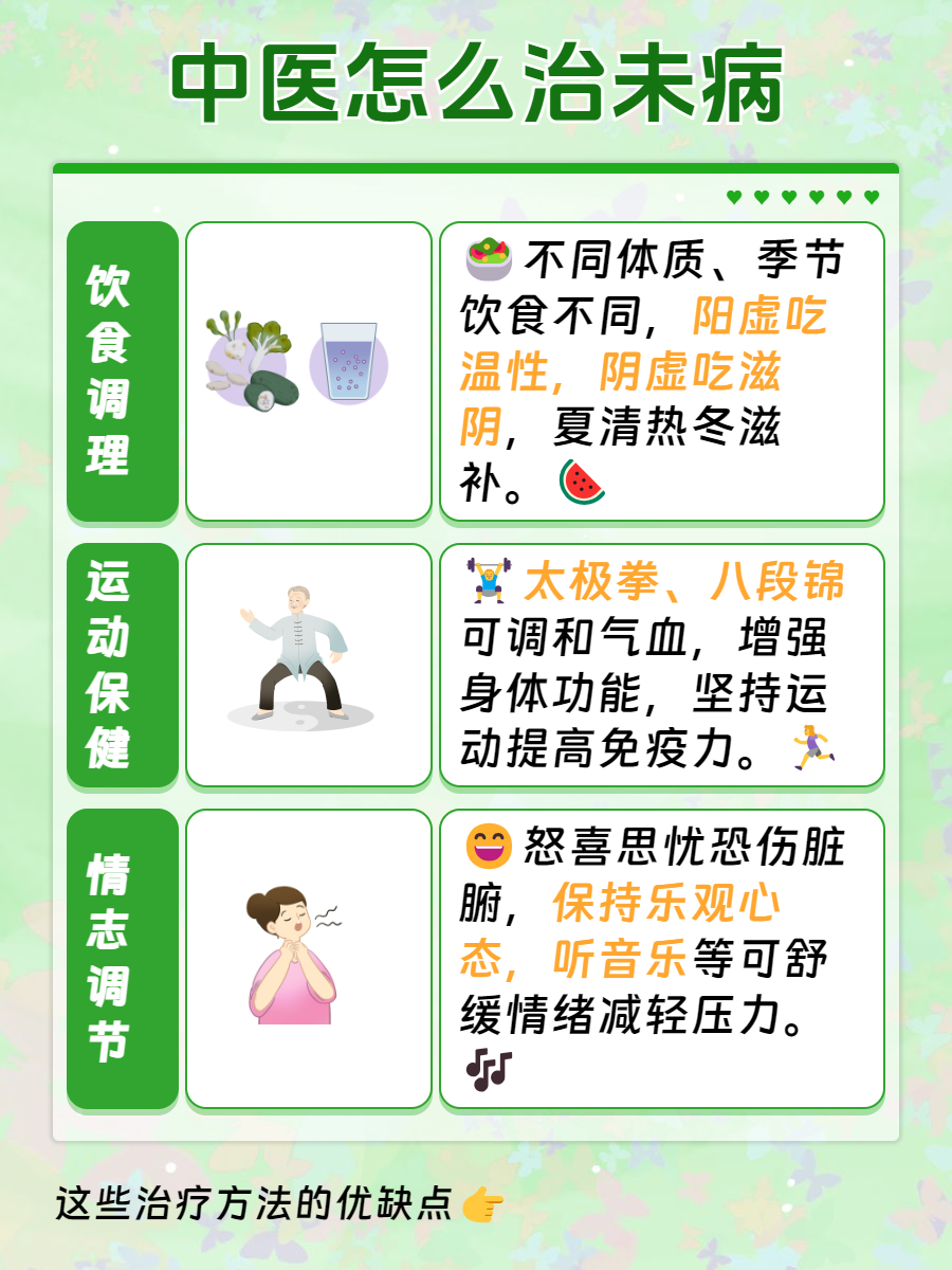 在健康越来越受重视的今天,“治未病” 理念越发深入人心。🌿中医治未病有着独特的智慧,能帮助我们预防疾病,保持身体的良好状态。🌟那么中医治未病的常见方法有哪些呢?📚