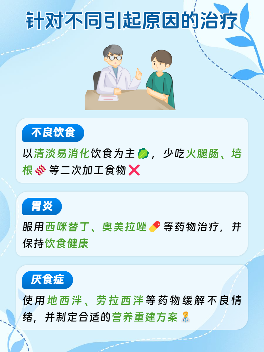 🔔胃炎:主要是指胃黏膜存在炎症反应,如果自身存在胃炎,可出现饱胀不适的情况,同时还可伴随胃部隐痛、食欲下降⬇️等症状。