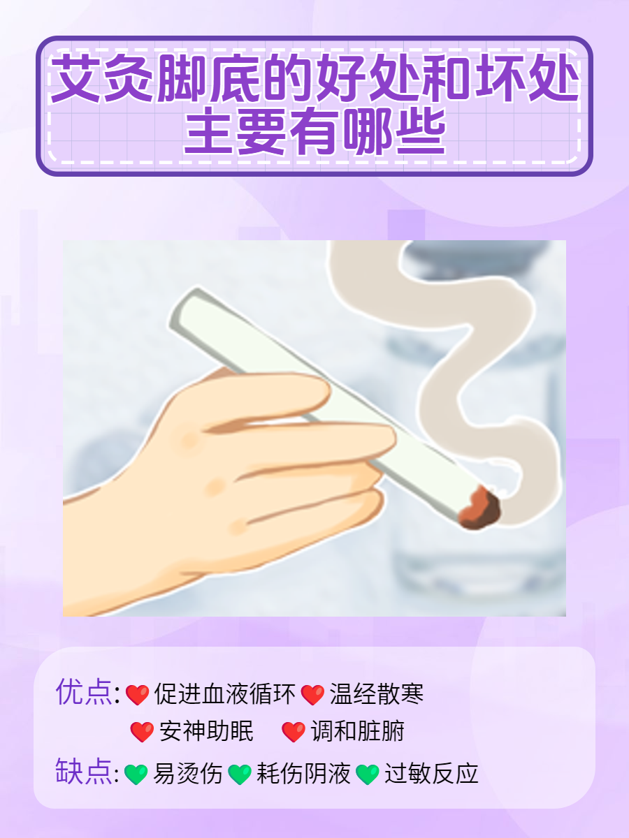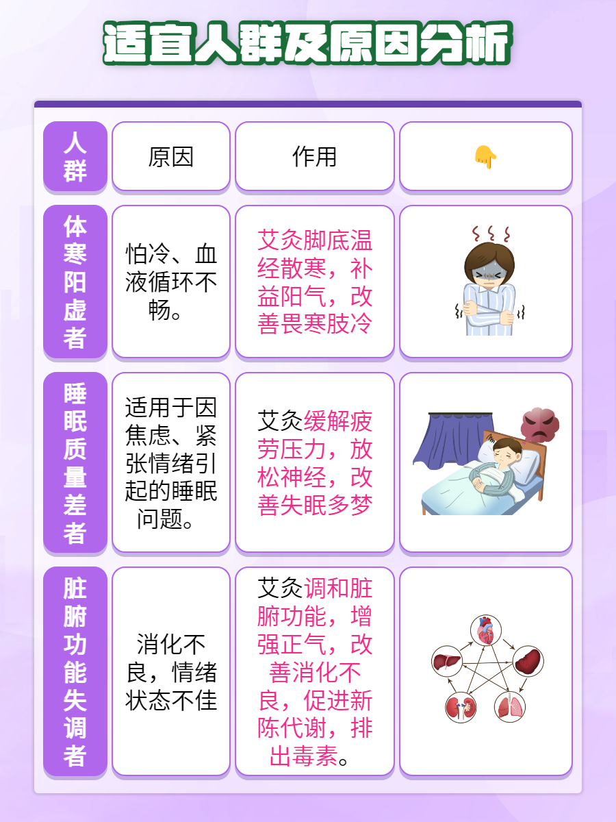 💥中医认为“寒从脚起”,脚底易受寒气侵袭。艾灸脚底的温热刺激能够温通经络,驱散体内的寒湿之气,对于脚底怕冷、血液循环不畅的人群来说,艾灸脚底能起到温经散寒、活血化瘀的作用。此外,艾灸还能缓解因寒凝血瘀引起的疼痛和不适。