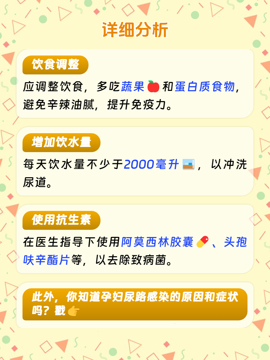 3⃣使用抗生素:如果尿路感染较为严重,需在医生指导下谨慎使用阿莫西林胶囊、头孢呋辛酯片等。不要自行增减药量或停药,以确保彻底治愈感染,防止复发👏。