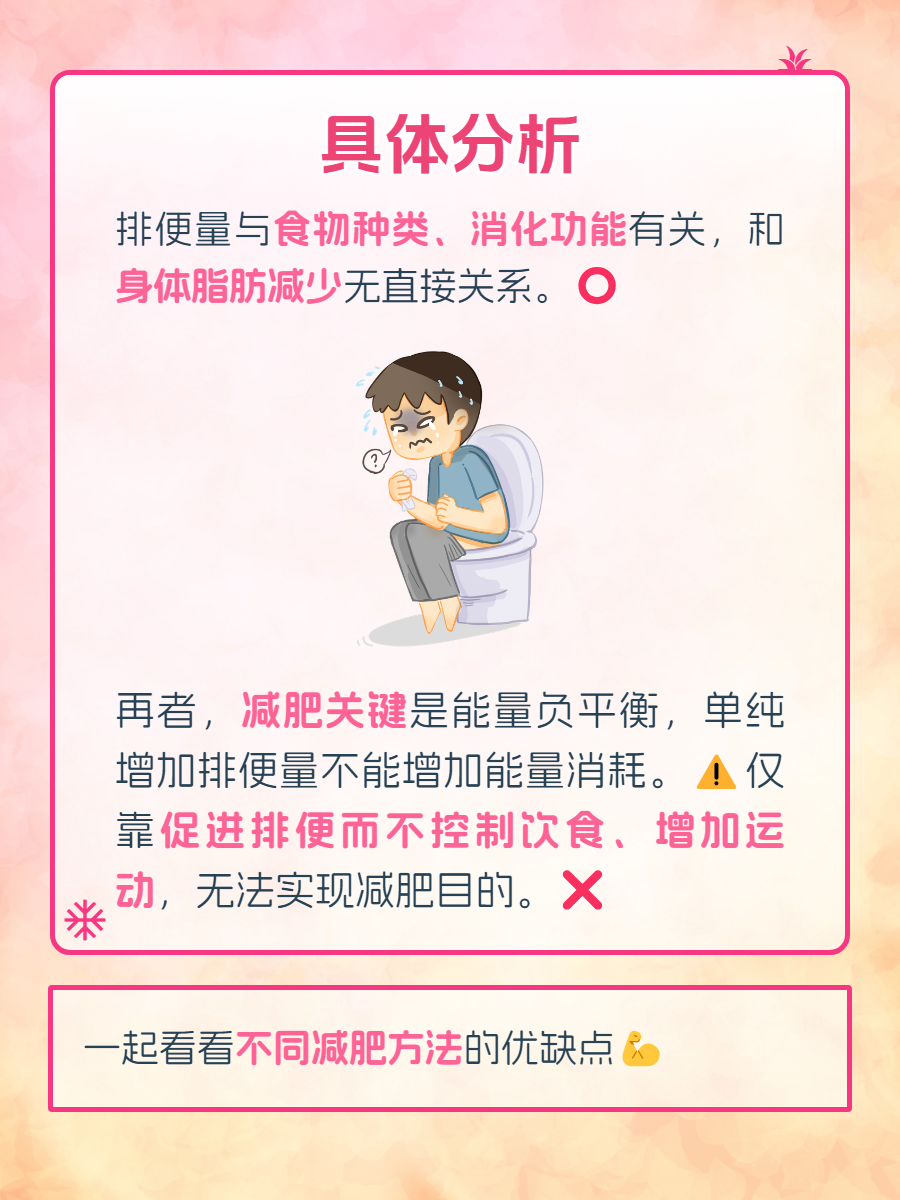 🌸其次,减肥的关键是能量的负平衡,即消耗的热量大于摄入的热量。单纯增加排便量并不能增加能量的消耗。如果只是通过某些方法促进排便而不控制饮食和增加运动量,是无法达到减肥目的的。