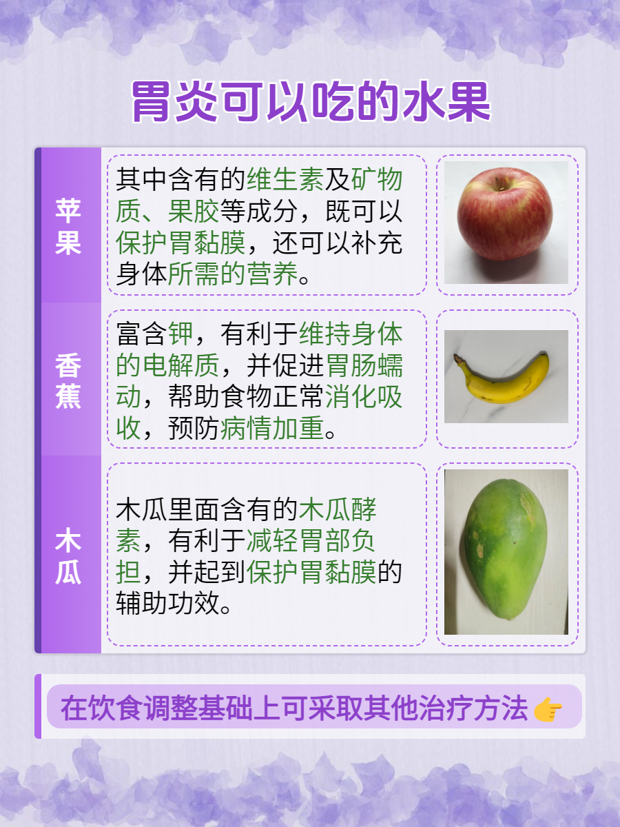 🌸胃炎患者在饮食调整的基础上,还要根据个人情况给予其他相应的处理措施,才有利于提高治疗效果。希望这篇科普文章能帮助胃炎患者更好地了解水果的选择和食用方法,🌟如果您觉得这篇文章有价值,不要忘了点赞、收藏哦😉。