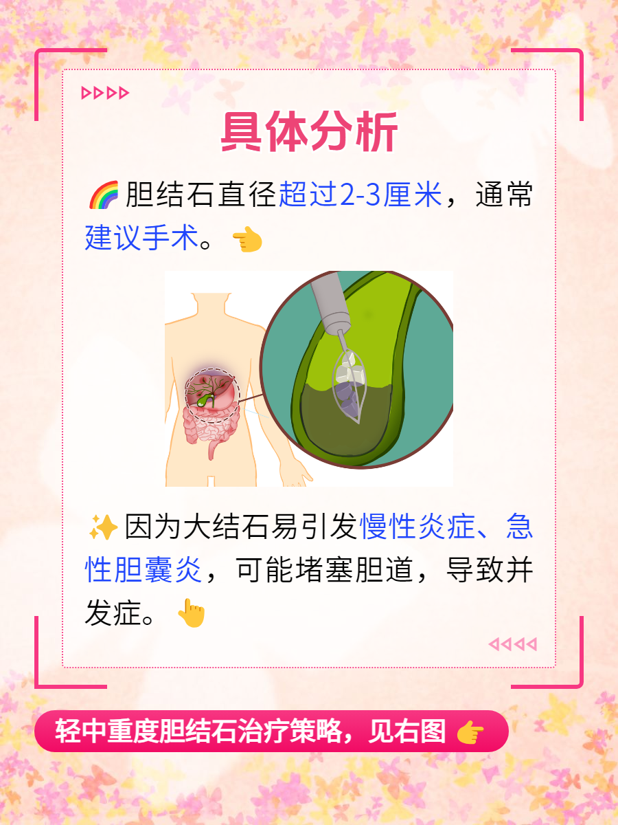 面对胆结石的挑战,我们无需过分恐慌。通过科学合理地评估结石大小与病情严重程度,并采取针对性的治疗措施,我们完全有能力守护好自己的胆囊健康。如果您觉得有帮助,请不要吝啬您的点赞👍、评论💬和转发,让我们携手共创健康美好的生活!🌈✨💖