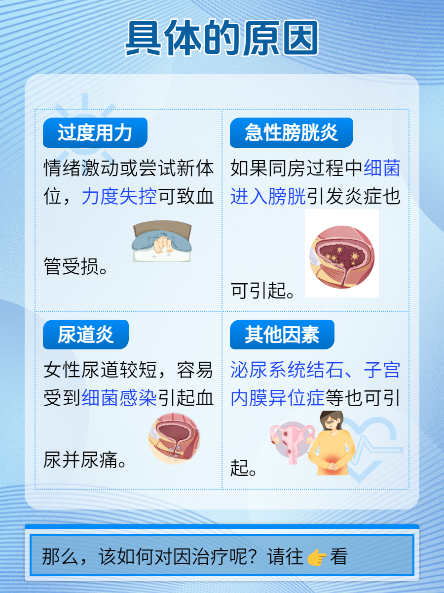 除了上述三大原因外,还有一些其他因素也可能导致同房后血尿和尿痛,如泌尿系统结石、子宫内膜异位症等。😣