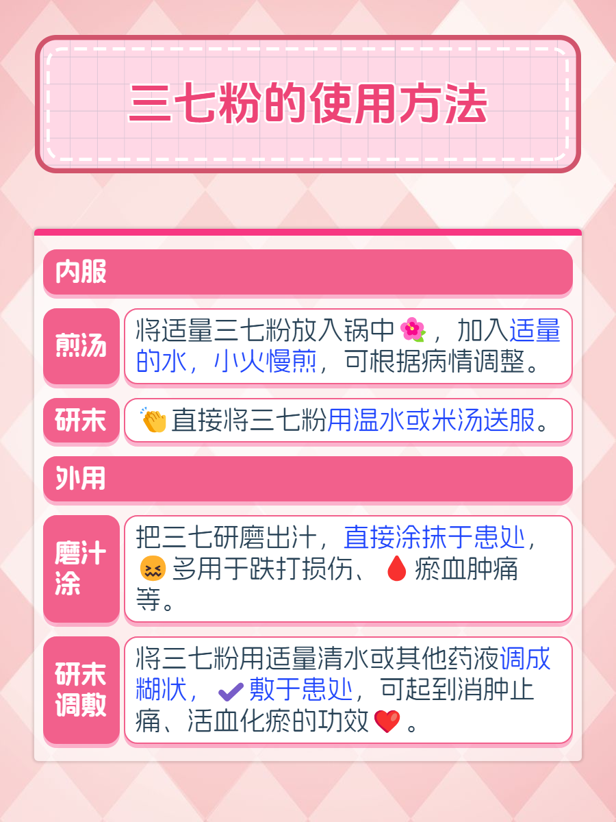 三七粉虽具有多种药用价值,但服用时需明确其针对性,请务必遵循医嘱或说明书上的剂量,避免过量,以免引发恶心、呕吐等不良反应。