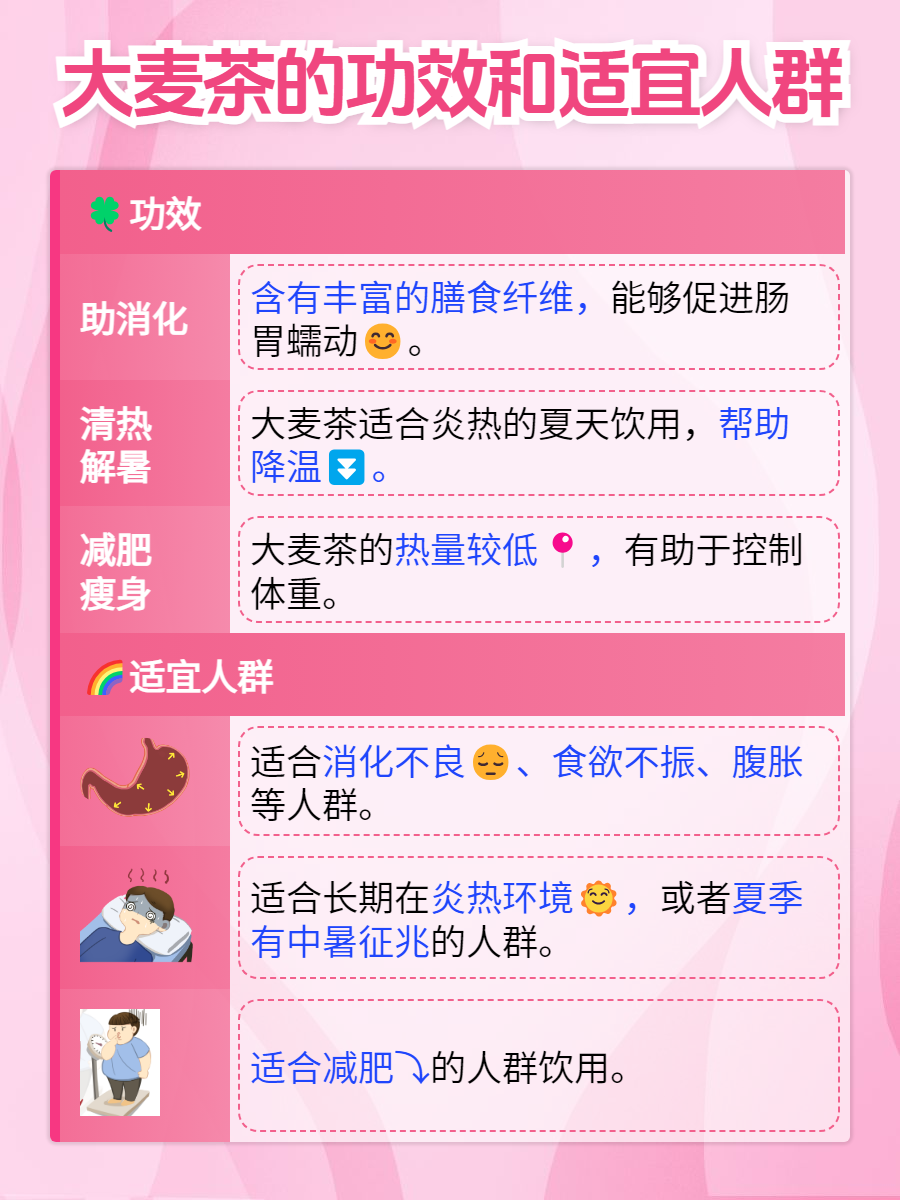 虽然大麦茶具有诸多好处,但并非人人都能享用😢。除了上述提到的副作用外,🚫还需要注意不要因为大麦茶好喝就过量饮用,一般情况下,🍵每天喝2-3杯是比较合适的。同时,不要把大麦茶泡得太浓🌿,以免对肠胃造成刺激。