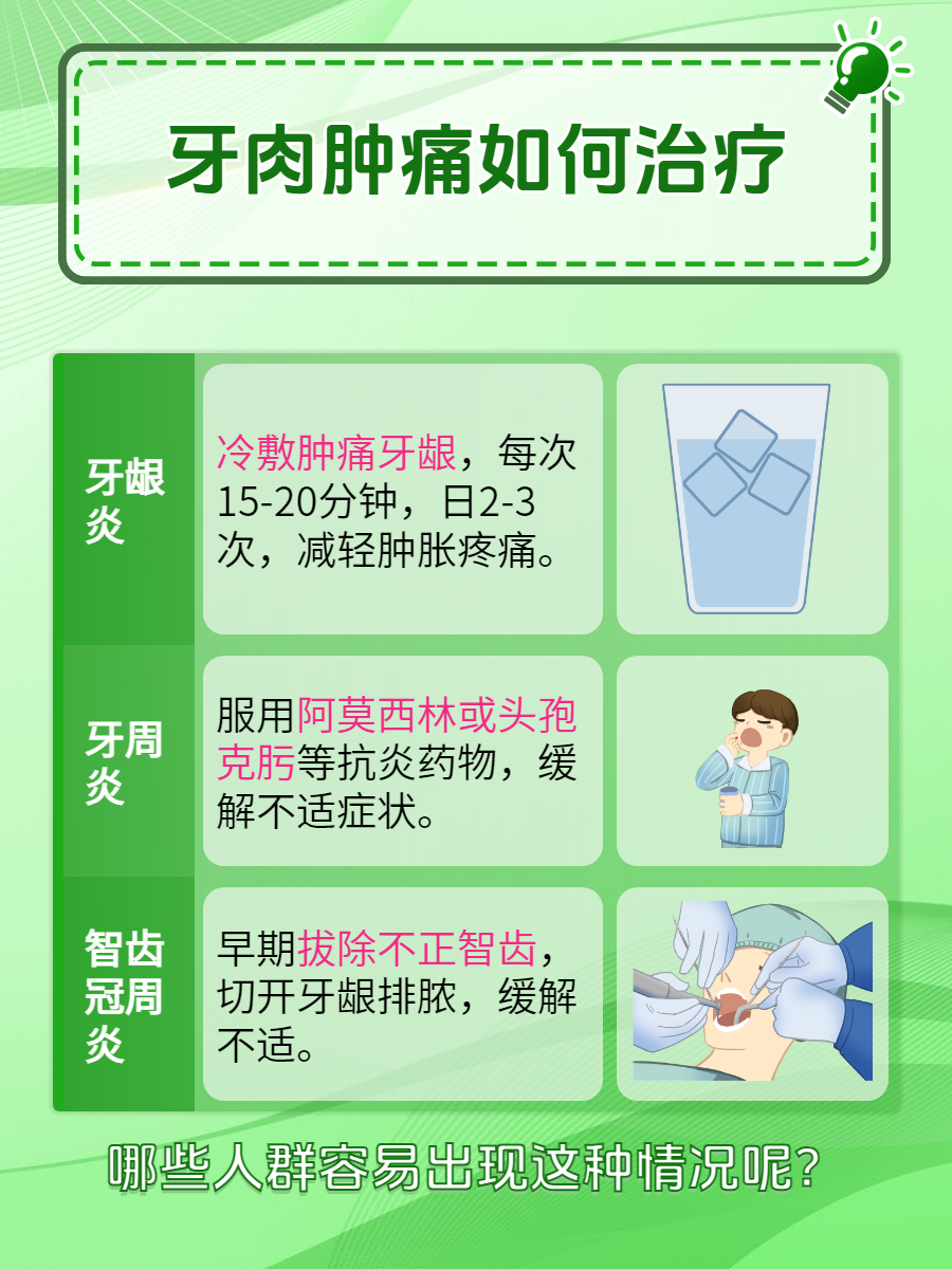 牙肉肿痛,即牙龈肿痛,是口腔常见的一种症状,可能由多种原因引起,了解牙肉肿痛的原因及其消肿方法至关重要,以便为患者提供准确有效的治疗建议。那么出现牙肉肿痛的情况该怎么消肿呢?