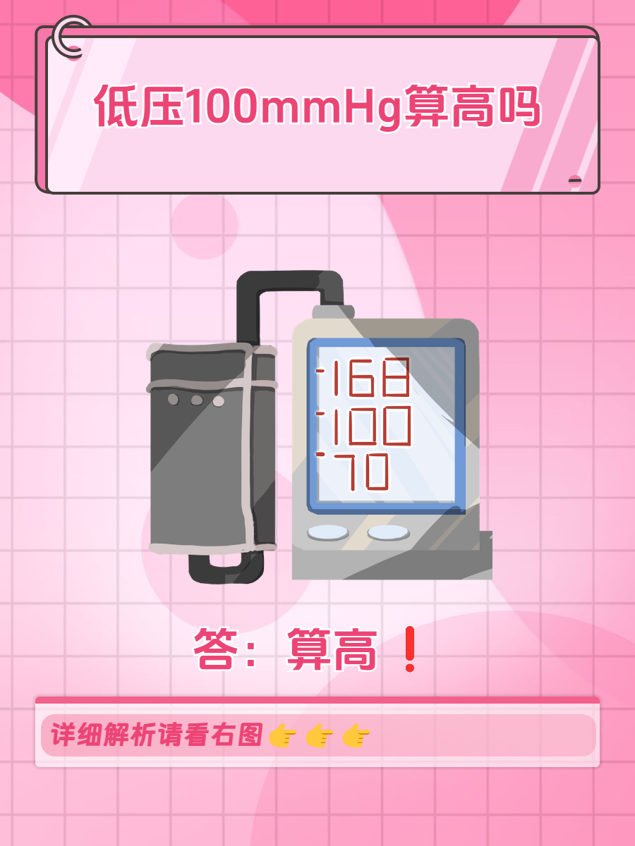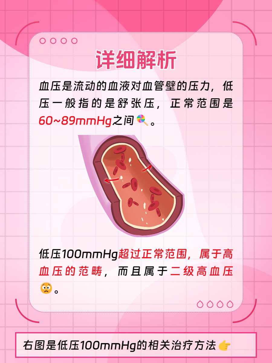在医学领域,低压即舒张压,正常范围应在60-89mmHg之间。📊如果低压达到100mmHg,这算高吗?