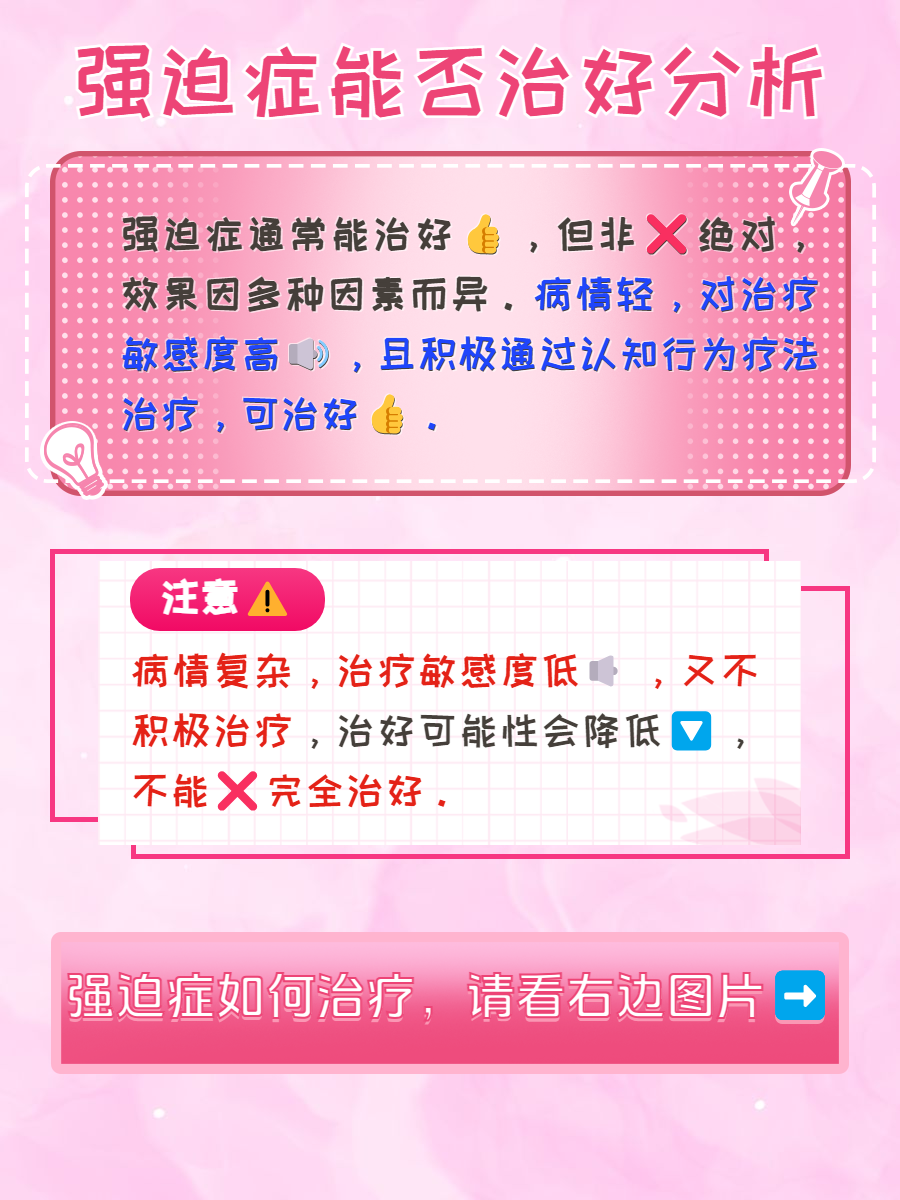 好了,今天关于强迫症能否治好的分享就到这里啦!如果自身患有强迫症,建议及时就医进行治疗,从而达到治好的效果。此外,如果还有其他疑问,也请在评论区留言,我会进行一一解答。