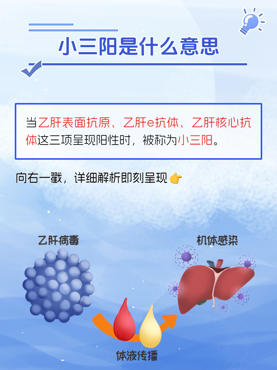🐭一般来说,当人体感染乙肝病毒后,免疫系统会与病毒展开战斗。在这个过程中,乙肝病毒和免疫系统的相互作用会导致不同的检查结果。☘️小三阳的出现,可能是病毒复制相对减弱,传染性也相对较低,但这并不意味着就可以掉以轻心。