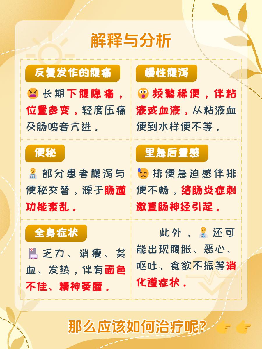 👨⚕️在日常的医疗咨询中,我深知慢性结肠炎对患者生活带来的长期困扰。慢性结肠炎是一种慢性肠道炎症性疾病,通常表现为肠道的炎性水肿、溃疡、出血等病变。虽然其症状可能因人而异,但了解这些症状对于及早诊断和治疗至关重要。接下来,我将从医生的角度,为大家科普一下慢性结肠炎的常见症状,帮助大家更好地认识这一疾病。💡
