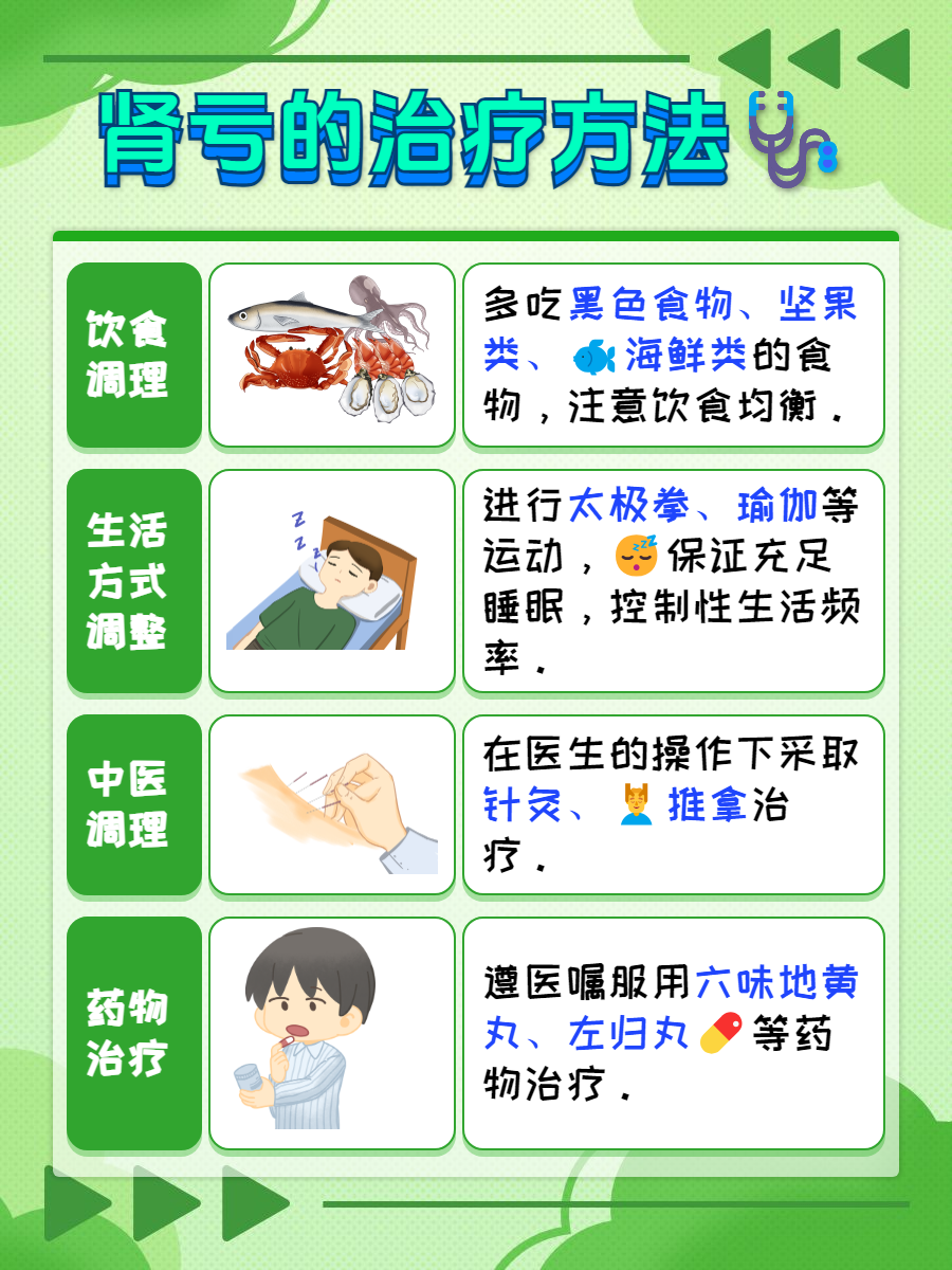 在发现自己有肾亏的症状时,最好先去看医生,👨⚕️让医生根据你的具体情况给出专业的建议。💡平时,需要注意避免过度劳累💼、熬夜🌙、吸烟、喝酒🍻等不良习惯。都会损伤肾脏。建议多吃一些对肾脏有益的食物,如黑色食物🥜、坚果类食物、🦐海鲜等。