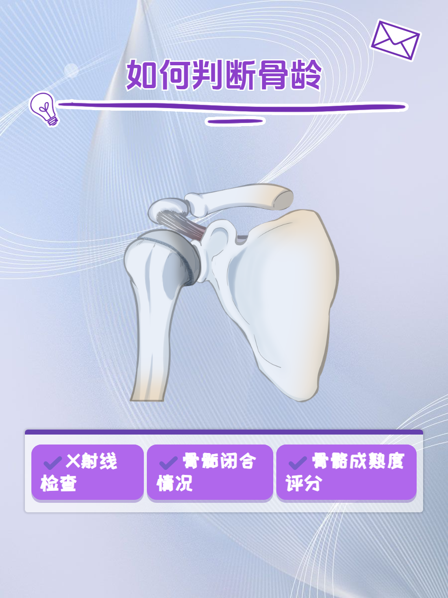 2、骨骺闭合情况:骨骺是长骨末端软骨区域,随着年龄增长逐渐骨化并闭合。通过X光片观察骨骺的闭合程度,可以评估骨骼的成熟度🍄骨骺的闭合情况是判断骨龄的一个重要指标。🌈