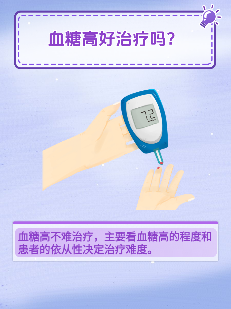 🩸血糖高一般是指血液中的葡萄糖较多,大部分用来判断是否患有糖尿病。一旦检测血糖高,确诊糖尿病,是否好治疗得看疾病的程度以及患者的依从性。