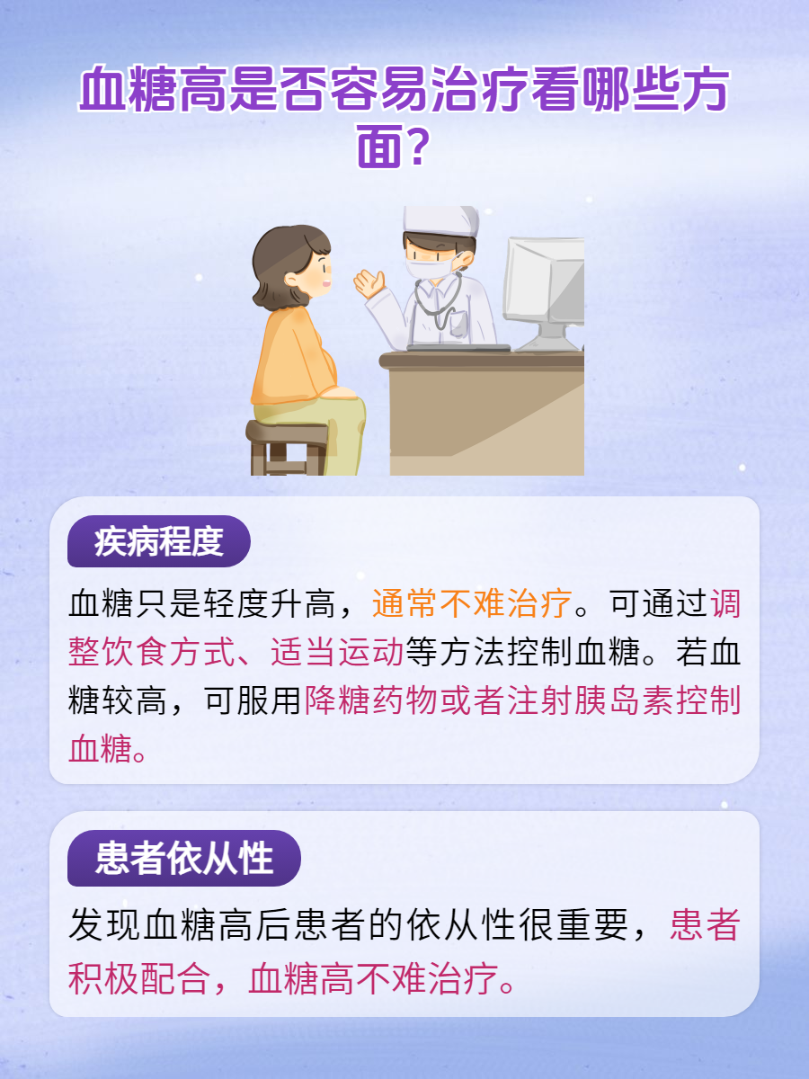 😷2、患者依从性:血糖升高后,患者的配合度至关重要。只要患者能够主动配合,在治疗期间注重饮食管理,并重视体重控制等措施,治疗起来通常不会很困难。