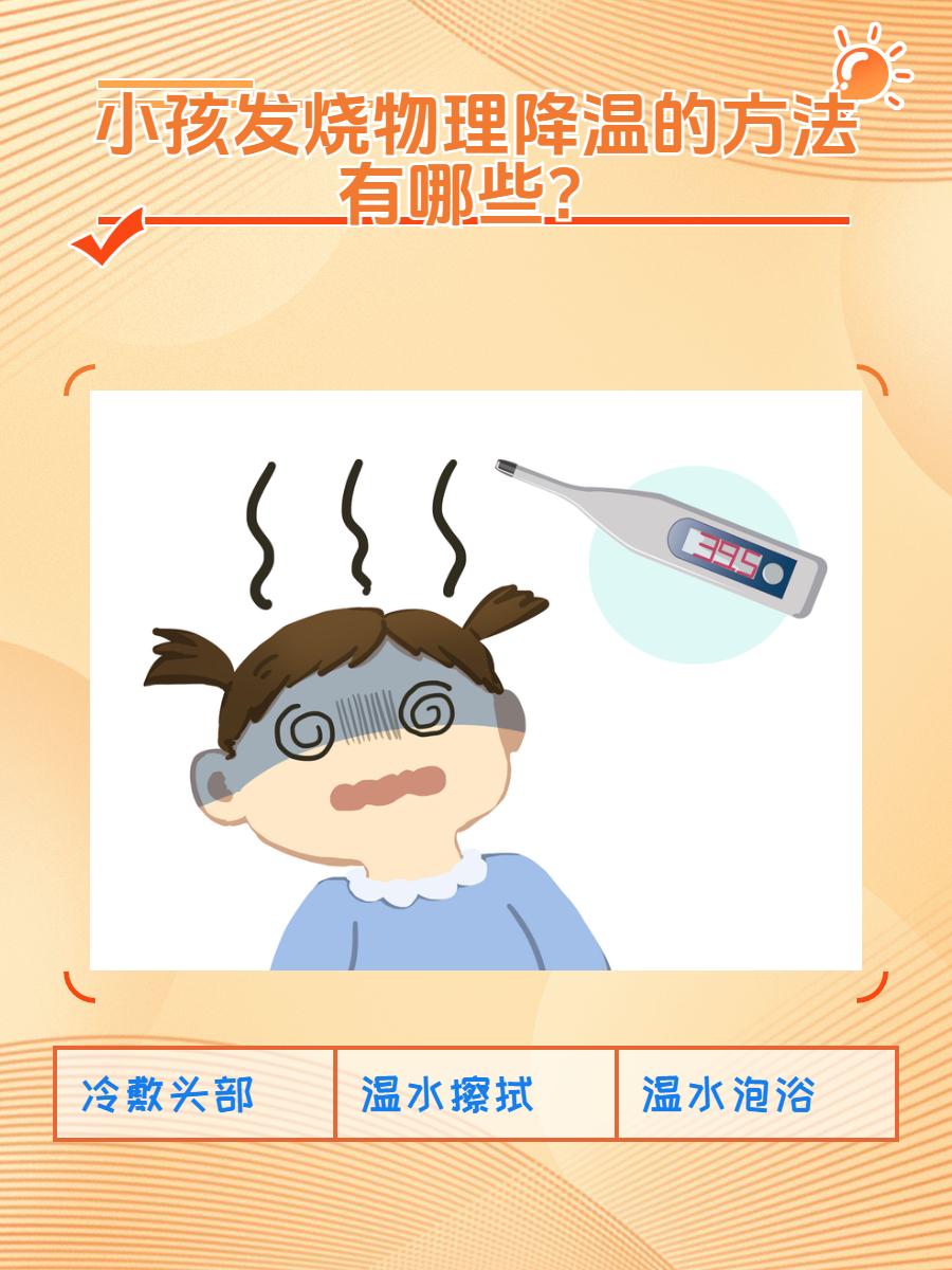 烧是小孩🧒比较常见的一种现象,但这个时候父母通常就会比较着急,想要急切的了解一些比较安全的降温方法。下面给大家列举几点,有关于小孩发烧物理降温的方法,希望能够给各位家长带来帮助🤗。