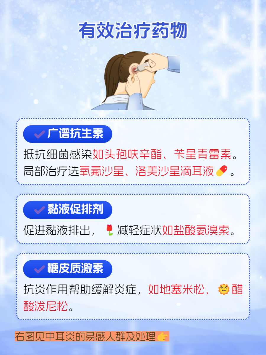 💥广谱抗生素:这类药物是对抗由细菌感染引起的中耳炎的主力军。例如,头孢菌素片如头孢呋辛酯片和青霉素注射液如注射用苄星青霉素能够有效控制感染,防止炎症扩散。外用药物如氧氟沙星滴耳液和洛美沙星滴耳液,也是局部治疗的好帮手。