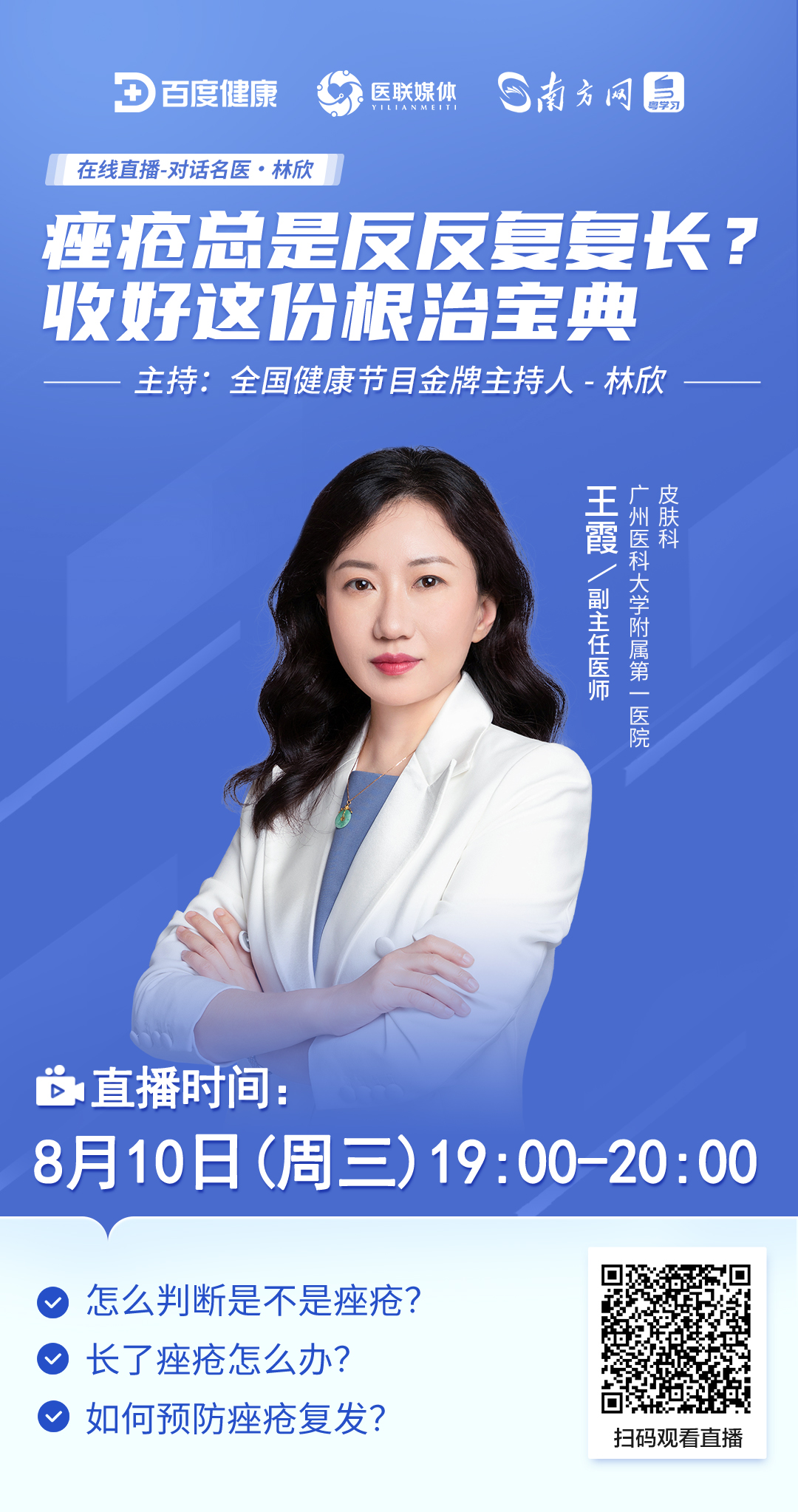 那么,反复长的痤疮又该如何根治呢?本期医联媒体《对话名医·林欣》由全国健康节目金牌主持人林欣主持,并且特别邀请到了广州医科大学附属第一医院皮肤科副主任王霞医生做客医联媒体直播间,为网友解答关于如何根治痤疮的相关问题。